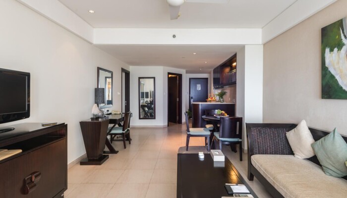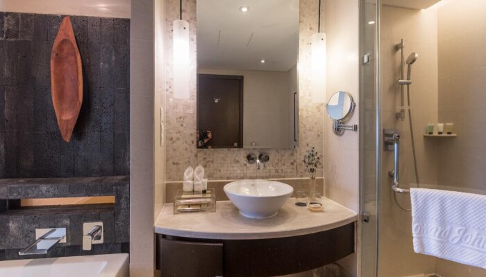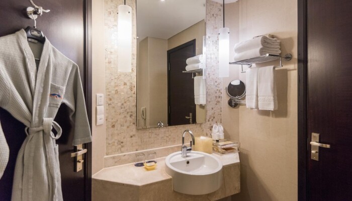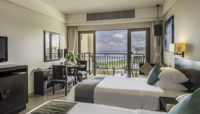 Территория отеля очень красивая, с 13 этажа у нас был чудесный вид. Внутри отель тоже стильный и чертовски приятный.Номера очень приятные. Я с дочками жила в Deluxe Sea View, ве что описано на сайтах - все в номере есть, включая фен и стиральный порошок. Убирают каждый день, полотенца меняют тоже, а вот постельное белье - только по требованию (там специальная карточка имеется - положишь ее на кровать - поменяют). Вода - 1 бутылка на человека в сутки. Есть чайник, пакетики чая (черного, зелеого) и кофе добавляют каждый день.