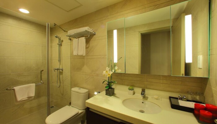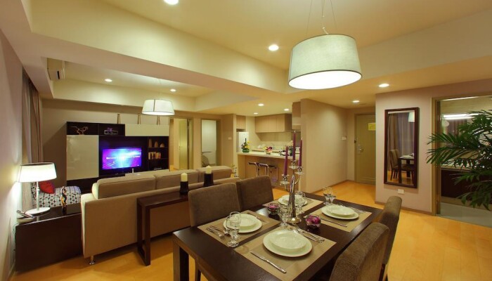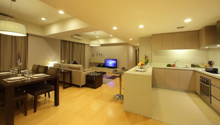 Я останавливался в этих апартаментах в течение 3 ночей с моей женой и ребенка 9 месяцев. Апартаменты расположены на пешеходной улице выше торгового центра, я был смущен, чтобы узнать вход и вестибюль, поэтому, я должен был спросить безопасность.Администратор был очень предупредительным при выполнении регистрации, и она даже шла меня к нашему номеру. Когда мы вошли в наш номер, номер очень чистый и просторный для 3 из нас, где у этого есть кухня, гостиная, и отдельная спальня с ванной. Они предоставляют всю необходимую посуду от ложки, вилку, ножи, тарелки, кружку, стакан, кастрюли, водный котел, микроволновку, печь, стиральную машину и т.д. Мы сочли это очень предупредительным, так как у нас есть ребенок, поэтому, мы могли приготовить свежие продукты к ней. У номера также есть 2 диспетчера кондиционера для гостиной и спальни, которые настолько удобные, и есть также Интернет, доступный и связанный и беспроводной. Средства также отличные с двумя джакузи и оборудованием спортзала, они походили на нашу частную АССОЦИАЦИЮ ИЗДАТЕЛЕЙ ПРОГРАММНЫХ ПРОДУКТОВ, так как никто не пользуется ими в течение рабочего дня.Мы повысили класс нашего номера в апартаменты с 3 спальнями на нашем последнем вечернем отдыхе, мы получили гостиную намного большего размера, 2 ванные, но спальни меньшего размера. Мы сделали ранний выезд приблизительно в 4:00, чтобы преследовать наш рейс, и персонал отеля был настолько предупредительным, чтобы найти такси.В в общем, мы были восхитительными с обслуживанием и номером, который мы оплатили. Я сильно рекомендую эти апартаменты для семьи с детьми особенно, которая нуждается в апартаментах с 2 спальнями, так как я думаю, что это стоит меньше, чем платеж 2 номеров в 5-звездочном отеле