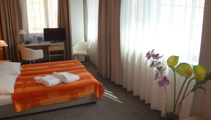 Сам отель располагается в 7-10 минутах езды автобусом от центра города, или 30 минутах ходьбы. Мы частенько прогуливались пешком до центра, благо погода была хорошая. Насчёт езды на автобусе, то это вообще было приятным делом. Пражский транспорт координально отличается от нашего своею чистотой и удобством.
